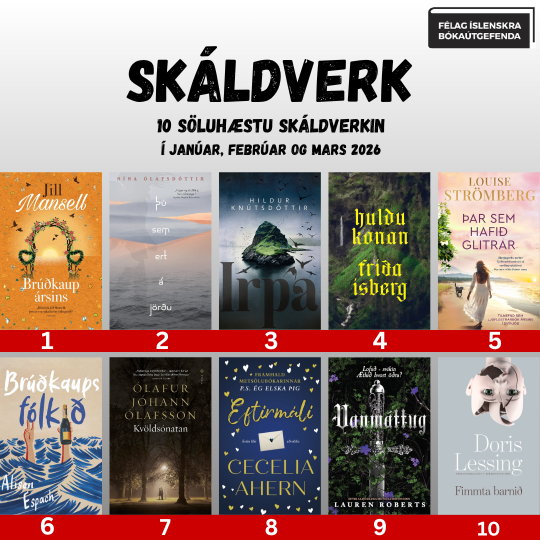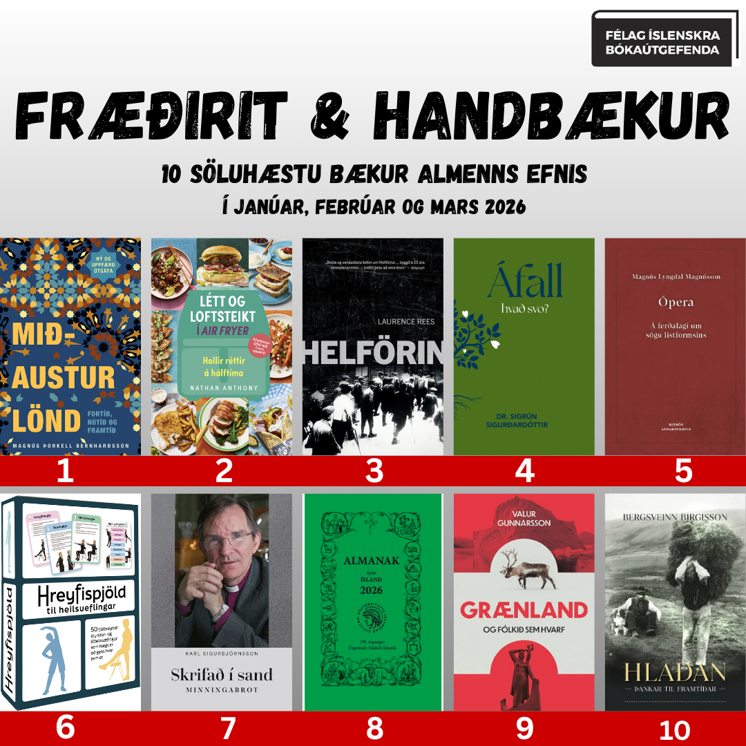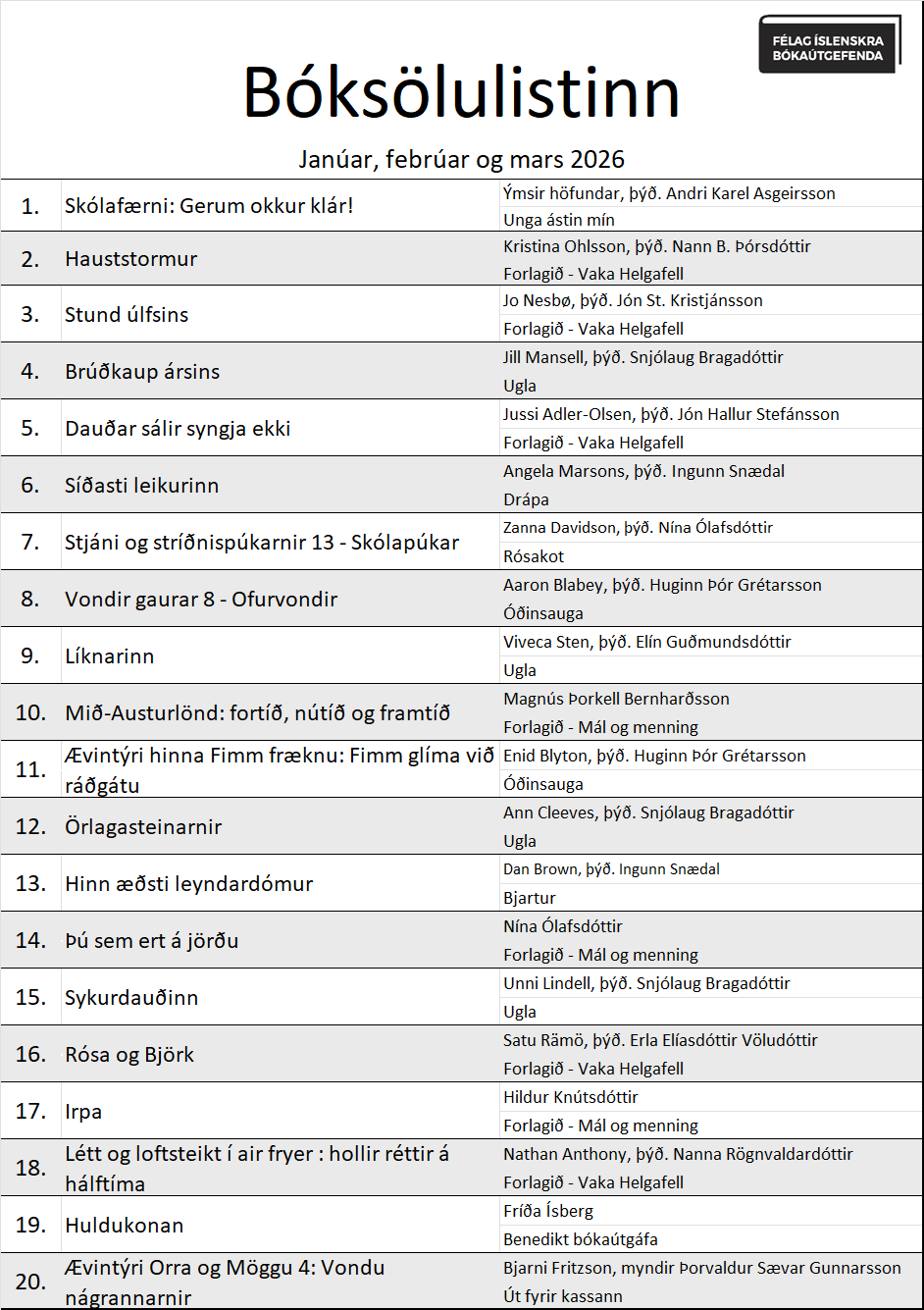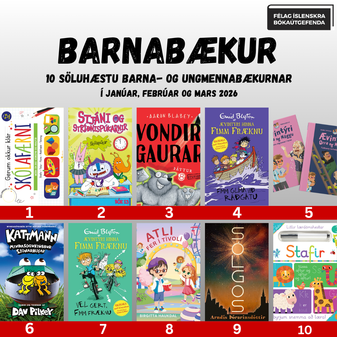 Ítarlegri lista má finna hér: Bóksölulistar Félags íslenskra bókaútgefenda